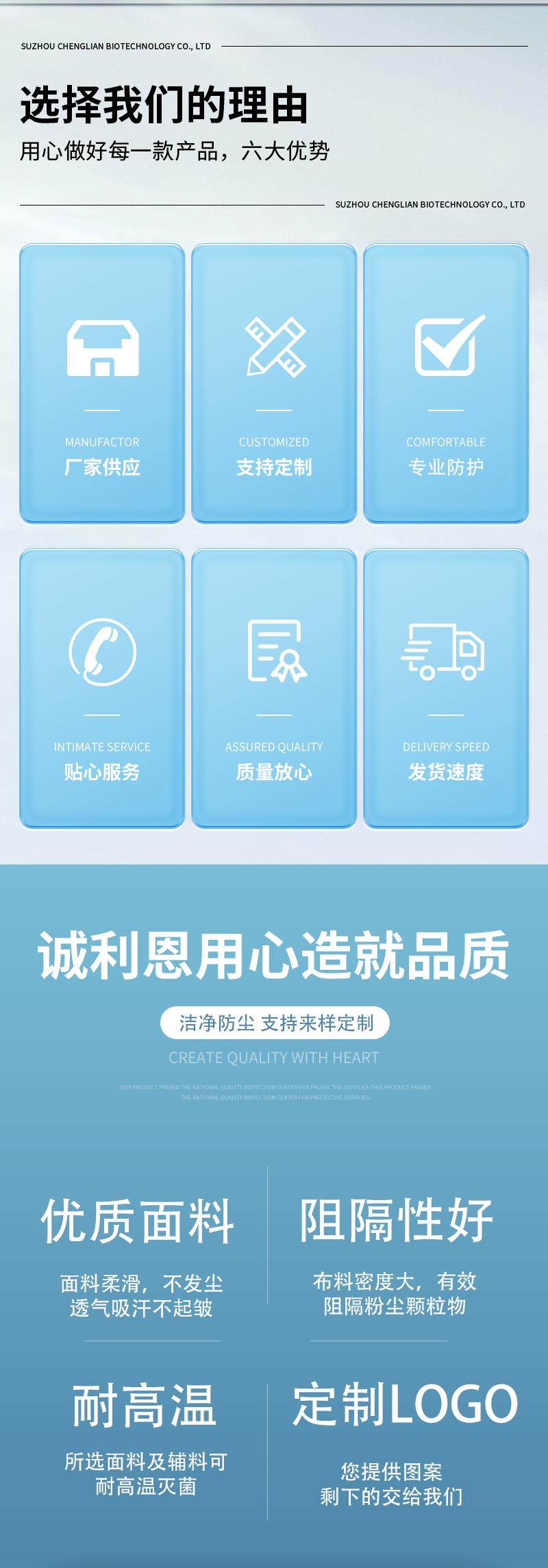 產品優勢:具有耐阻隔性、透氣性、耐濕熱滅菌及耐久性穿著柔軟舒適