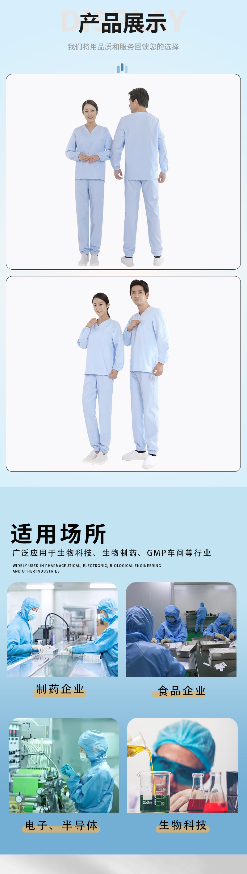 產品優勢:產品立體裁剪,分圓領和V領、長袖、短袖等款式。手腕和腳口處松緊設計,不束縛更貼合身體,使穿著更舒適。