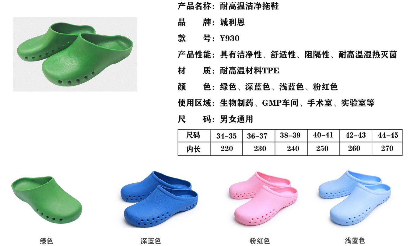 產品名稱:耐高溫潔凈拖鞋